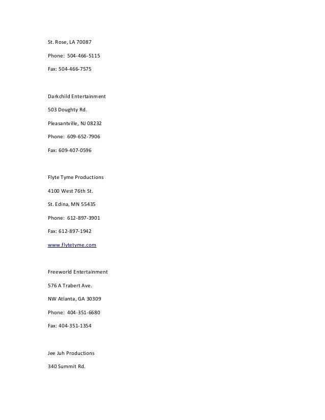 Atlanta Gang Accused of Targeting Mariah Carey in New ... Aug 29, 2022 · Marlo Hampton of 'The Real Housewives of Atlanta,' Atlanta United soccer player Brad Guzan and Atlanta Falcons football player Calvin Ridley also had their homes broken into. By Associated Press A ... So You Want To Get Signed? Proper's A&R list - Dopetracks SHADY RECORDS 151 Lafayette Street New York, NY 10013 Phone: 212 324 2410 fax: 212 324 2415 credits: D12, 50 Cent, G-Unit Urban Production Jermaine Dupri 685 Lambert Drive Atlanta, GA 30324 Phone: 404-888-9900 Fax: 404-888-9901 Credits: Da Brat, Bow Wow, Kris Kross Urban Production Accepts only solicited material Atlantic Records Over 60 years of recorded music history from Aretha Franklin & Led Zeppelin to Bruno Mars & Ed Sheeran.